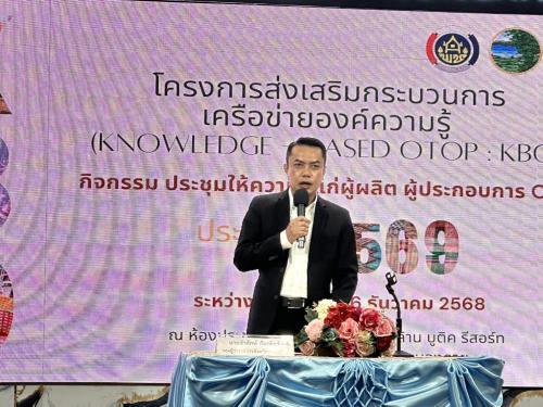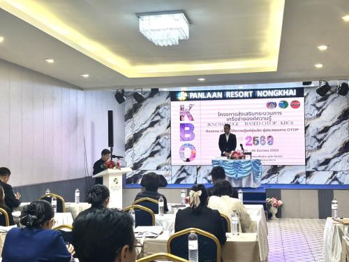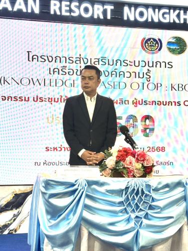 ซึ่งกำหนดดำเนินโครงการระหว่างวันที่ 25 - 26 ธันวาคม 2568 โดยมีนายประดิษฐ์ นัดทะยาย พัฒนาการจังหวัดหนองคาย กล่าวรายงาน กลุ่มเป้าหมาย ประกอบด้วยผู้ผลิต ผู้ประกอบการ OTOP จำนวน 20 ราย/กลุ่ม คณะกรรมการเครือข่าย KBO จังหวัด เจ้าหน้าที่พัฒนาชุมชนจังหวัดและอำเภอ รวม 43 คน เพื่อผนึกกำลังองค์ความรู้จากสถาบันการศึกษาในพื้นที่ หน่วยงานภาครัฐ เอกชน ภาคประชาชน เครือข่าย ผู้ผลิตชุมชน ปราชญ์ชาวบ้าน ภายในจังหวัด ในการพัฒนาขีดความสามารถของผู้ผลิต ผู้ประกอบการ OTOP ให้สามารถพัฒนาผลิตภัณฑ์ให้มีคุณภาพสูงขึ้นด้วยนวัตกรรมและเทคโนโลยี มีมูลค่าสูงขึ้นด้วยการออกแบบและเรื่องราวผลิตภัณฑ์ และให้มีโอกาสสูงขึ้นในการเข้าถึงตลาดใหม่ๆ ทั้งในและต่างประเทศ