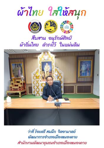 สำนักงานพัฒนาชุมชนจังหวัดหนองคาย ร่วมกับสำนักงานพัฒนาชุมชนอำเภอ หัวหน้าส่วนราชการระดับอำเภอ เจ้าหน้าที่พัฒนาชุมชน และภาคีเครือข่ายการพัฒนา เชิญชวนสวมใส่ชุดไทยพระราชนิยม และผ้าทอพื้นเมือง เพื่อร่วมอนุรักษ์ภูมิปัญญาผ้าไทย ผ้าพื้นเมือง ส่งเสริมอาชีพการทอผ้า สร้างงานให้กลุ่มผู้ผลิตชุมชน กระตุ้นและส่งเสริมเศรษฐกิจฐานรากด้วยการสวมใส่ผ้าไทย✨