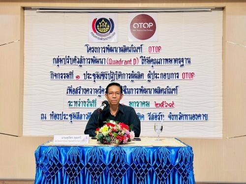 พช.หนองคาย ดำเนินโครงการพัฒนาผลิตภัณฑ์ OTOP กลุ่มปรับตัว สู่การพัฒนา (Quadrant D) ให้มีคุณภาพมาตรฐาน เพื่อสร้างงาน สร้างอาชีพ สร้างรายได้ให้คนในชุมชน มีคุณภาพชีวิตที่ดี