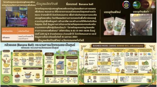- ผลิตภัณฑ์ : กล้วยบอล (Banana Ball) วิสาหกิจชุมชนกลุ่มเศรษฐกิจพอเพียงแปรรูปผลผลิตทางการเกษตรเพื่อสังคม หมู่ที่ 9 ตำบลวังหลวง อำเภอเฝ้าไร่ ประเภทกลุ่มผู้ผลิตชุมชน
