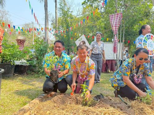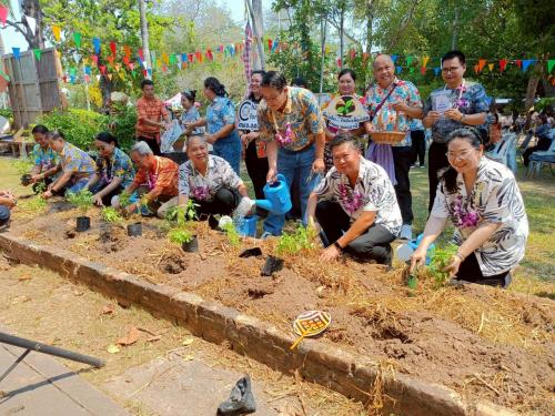 ภายในงานมีกิจกรรมสำคัญ อาทิ พิธีเปิดงาน การมอบสิ่งของเพื่อส่งเสริมการสร้างความมั่นคงทางอาหาร การปลูกผักสวนครัว พิธีเปลี่ยนผ้าสไบห่มองค์พระพุทธรูป สรงน้ำพระ และพิธีรดน้ำดำหัวขอพรผู้สูงอายุและผู้บริหาร ซึ่งเป็นการสะท้อนถึงคุณค่าทางวัฒนธรรมและความกตัญญูกตเวที อันเป็นเอกลักษณ์ของประเพณีสงกรานต์ไทย