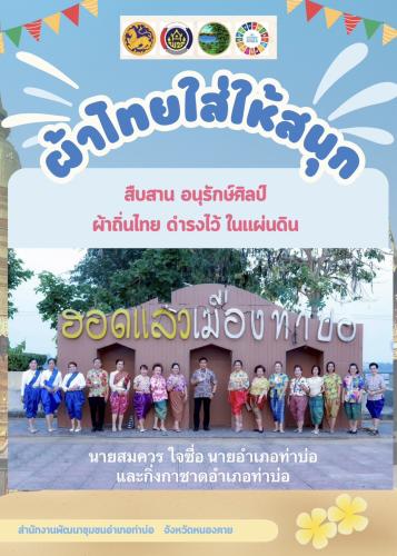รองผู้ว่าราชการจังหวัดหนองคาย ร่วมกับ สำนักงานพัฒนาชุมชนจังหวัดหนองคาย สำนักงานพัฒนาชุมชนอำเภอ หัวหน้าส่วนราชการระดับอำเภอ เจ้าหน้าที่พัฒนาชุมชน และภาคีเครือข่ายการพัฒนา เชิญชวนใช้และสวมใส่ผ้าไทย ผ้าลายอัตลักษณ์ประจำจังหวัด และผ้าทอพื้นเมือง เพื่อร่วมอนุรักษ์ภูมิปัญญาผ้าไทย ผ้าพื้นเมือง ส่งเสริมอาชีพการทอผ้า สร้างงานให้กลุ่มผู้ผลิตชุมชน กระตุ้นและส่งเสริมเศรษฐกิจฐานรากด้วยการสวมใส่ผ้าไทย✨